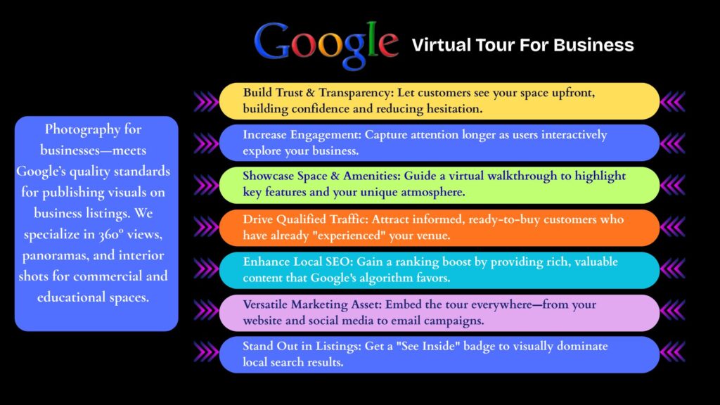 It’s absolutely astounding to know how you benefit from the 360° photography on google. This technology lets potential clients virtually explore facilities in detail, leading to increased trust, better engagement, and higher sales and conversions.